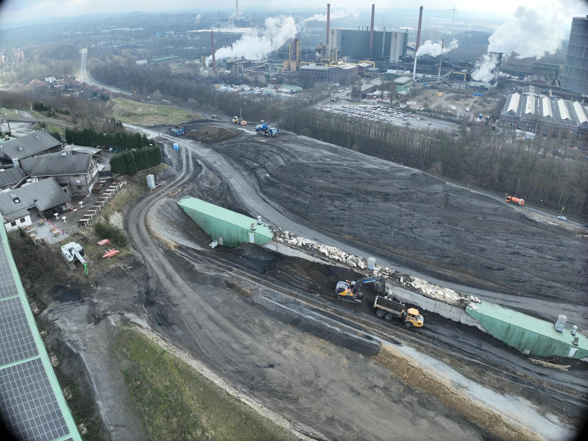 Abbruch Skiförderbandtunnel Abbruch Skiförderbandtunnel Dauer des Projektes: Februar 2025 – Juni 2025 Prosperstraße, 46328 Bottrop Im Skialpincenter Bottrop wurde der 200 m lange Skifördertunnel in Terrassenbauweise freigelegt – bei bis zu 26 % Steigung und 50 m Höhendifferenz. Nach dem Rückbau der Fördertechnik und der Stahlbetonröhre entstand ein stabiles Erdplanum mit Bewehrungsgewebe und Bodenpolster. Rund 4.500 to Bauschutt wurden direkt vor Ort zu RC-Material aufbereitet und für spätere Bauwerke der geplanten Hotel- und Freizeitanlage wiederverwendet. Bodenaushub 45000 m³ Tunnelrückbau 200 m RC Material 4500 to Höhendifferenz 50 m Leistungsumfang Freilegung Über 45.000 m³ Boden wurden bis zu 20 m tief in Terrassenbauweise ausgehoben, um den Skifördertunnel bei bis zu 26 % Steigung und 50 m Höhendifferenz freizulegen. Abbruch Der 200 m lange Skifördertunnel aus Stahlbeton einschließlich der gesamten Fördertechnik wurde vollständig zurückgebaut. Aufbereitung Rund 4.500 to Bauschutt wurden vor Ort zu Recycling-Material (RC-Material) aufbereitet und wiederverwendet. Bodenverbesserung Zur Stabilisierung wurde ein Erdplanum hergestellt, mit Bewehrungsgewebe gesichert und durch ein 2.000 m² großes Bodenpolster ergänzt. Folgearbeiten Das Baufeld wurde abschließend so vorbereitet, dass unmittelbar mit dem Neubau des Skifördertunnels begonnen werden konnte. Maschinenpark Kettenbagger CAT 352 Kettenbagger Volvo EC 380 ENL Kettenbagger CAT 223 Raupe CAT D6 TXW Dumper Volvo A 30 G Dumper Volvo A 25